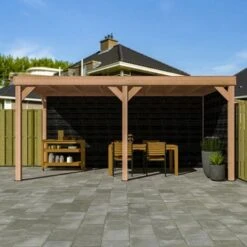 Overkapping Douglas Hout Zwart Met Achterwand En Zijwand 270×270 Cm