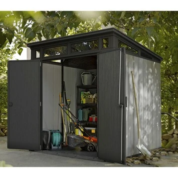Dit kunststof tuinhuis Keter Artisan 77 is gemaakt van DUOTECH™ materiaal, dit materiaal heeft het uiterlijk van hout en de voordelen van kunststof. Het is gemakkelijk schoon te houden, onderhoudsvrij en weersbestendig. Leuke extra kenmerk; de wanden zijn overschilderbaar. Zo kun je ze een kleur geven die past bij de rest van je tuin of huis. De twee openslaande deuren in combinatie met de ligt aflopende drempel zorgen ervoor dat dit tuinhuisje makkelijk te betreden is met grotere spullen, als barbecues, fietsen, tuingereedschap en ander gereedschap. De wanden zijn gemaakt van DUOTECH™ materiaal, dit heeft alle voordelen van kunststof, maar de look van hout. Dit maakt het product onderhoudsvrij, weerbestendig en duurzaam. Nog een mooi voordeel, hierdoor zijn de wanden overschilderbaar. Zo kun je hem de kleuren geven die passen bij jouw tuin- of balkoninrichting. Voor het verven gebruik je een op water gebaseerde acrylverf voor buitengebruik. Aanbrengen doe je met een roller.