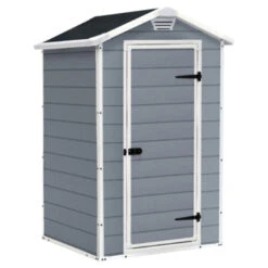 Op zoek naar een compacte onderhoudsvrije berging voor in je tuin? Het Keter Manor 43 kunststof Tuinhuis 128x94x196 biedt een compacte uit de Keter kunststof tuinhuizen collectie oplossing voor opslag van tuingereedschap, barbecues, tuinaccessoires, kinderspeelgoed en tal van andere spullen.Deze berging past met zijn houtlook past uitstekend in een natuurlijke omgeving. Een ingebouwd ventilatiepaneel zorgt ervoor dat er in dit tuinhuisje een constante toevoer van lucht is en beschermt meteen tegen de schadelijke effecten van schimmels. Het bijgeleverde vloerpaneel zorgt voor een stabiele, schone en vochtvrije basis. Na levering kan het Keter Manor 43 kunststof tuinhuisje direct worden opgebouwd, mits een vlakke ondergrond is voorbereid. Twee personen zijn er ongeveer 2-3 uur mee bezig om het Keter huisje op te bouwen. Dit tuinhuis van het merk Keter biedt een stevige, onderhoudsvrije oplossing om je spullen in je tuin op te bergen.