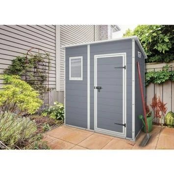 Deze Keter Manor Pent kunststof tuinschuur is een onderhoudsvrije, compacte en stevige berging voor in je tuin. Dit kunststoffen tuinhuis met houtlook biedt de ideale oplossing voor de opslag van tuinmeubilair, tuinkussens, gereedschap of kinderspeelgoed. Door het gebruik van kunststof is dit huisje bestendig tegen verkleuring, rot of roest. De berging wordt geleverd inclusief ondervloer, dak en heeft een raam voor extra daglicht. Ook is het tuinschuurtje geventileerd.