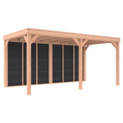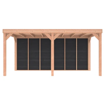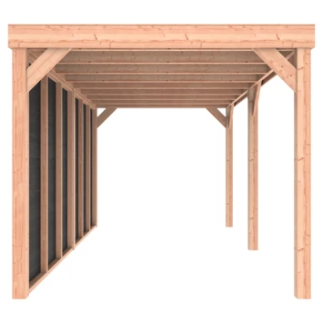 Deze Douglas terrasoverkapping met achterwand is een toegevoegde waarde voor iedere tuin. De karakteristieke look die Douglas hout jouw tuin in brengt zorgt voor een natuurlijke en vooral sfeervolle uitstraling. Het Douglas hout is een sterke soort tuinhout dat van nature goed bestand is tegen vuil en vocht. Deze houten overkapping is 522 cm breed en 270 cm diep en wordt geleverd inclusief EPDM-folie voor een waterdichte dakbedekking. Het totaalpakket staat extra stevig dankzij de 12×12 cm Douglas palen.