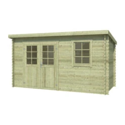 Tuinhuis Danna is een praktische en royale blokhut met een moderne uitstraling. Achter de afsluitbare dubbele deur met lage dorpel is bergruimte voor waardevolle spullen en/of tuingereedschap.