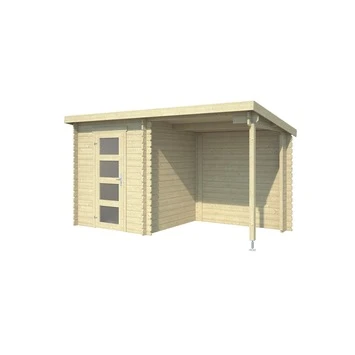 Een tuinhuis is altijd handig voor het opbergen van tuinspullen of om onder te relaxen en met een overkapping heb je zeker voldoende ruimte. Met zowel een binnen- als buitenruimte is dit tuinhuis prima geschikt voor zowel het opslaan van spullen, als voor het gebruik als tweede (buiten) huiskamer. Het huis is vervaardigd uit Noord-Europees vurenhout, dat bekend staat om zijn makkelijke bewerking. Het huis heeft een deur met ramen en een cilinderslot, zodat je jouw spullen veilig kunt opbergen. De bitumendakbedekking maakt het dak waterdicht. Je kunt zelf kiezen of je de overkapping links of rechts tegen de berging bouwt. Dankzij het stapelbouwprincipe kun je dit tuinhuis met overkapping makkelijk zelf in elkaar zetten.