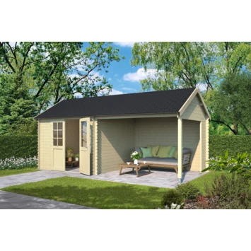 Tuinhuis Marin is een prachtige, ruime blokhut met een landelijke uitstraling met een royale overkapping. Onder de overkapping is het heerlijk vertoeven. Het afgesloten gedeelte van deze blokhut is geschikt als bergruimte voor bijvoorbeeld waardevolle spullen en/of tuingereedschap.